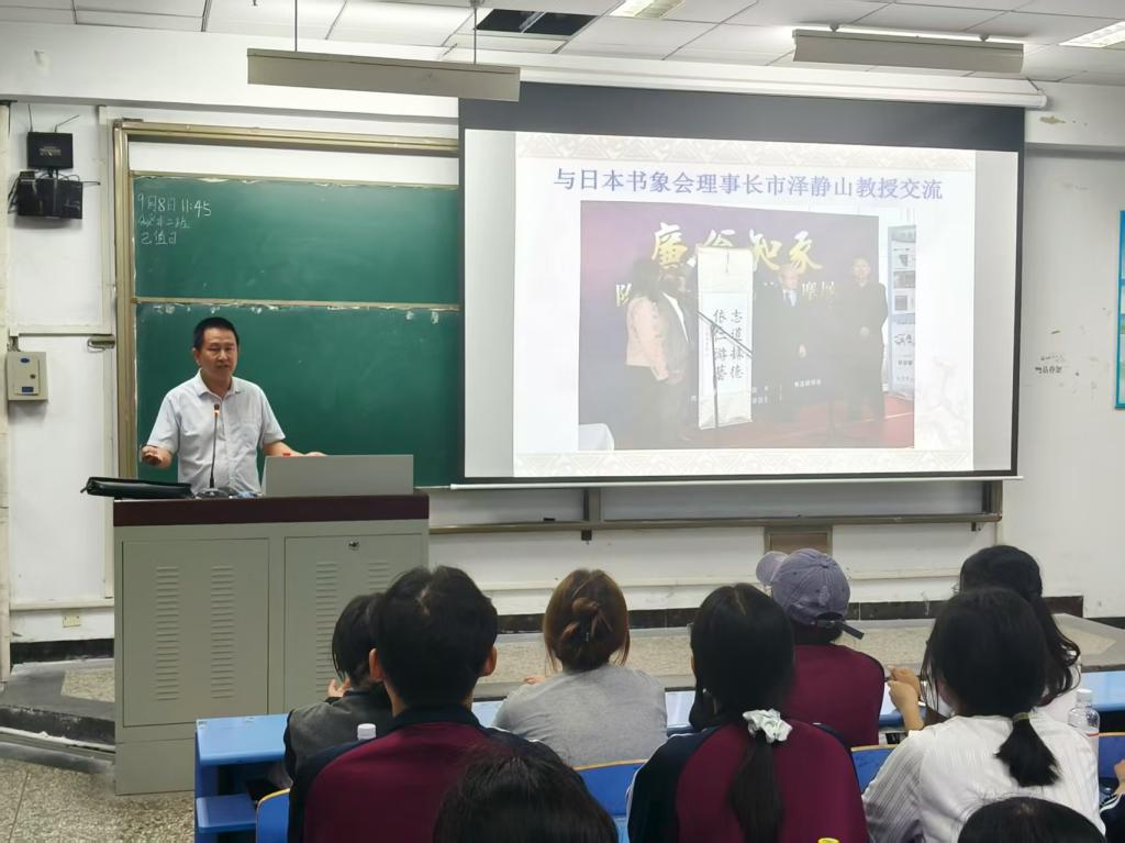 为引导新生进一步适应大学的学习和生活节奏,了解唐山的历史文化与地域文明,从中汲取精神养分,树立正确的世界观、人生观和价值观,2025年9月8日,beat365正版唯一官方网站于北院主楼文七阶梯教室举办了2025级新生“开学第一课”入学教育活动。本次活动由beat365正版唯一官方网站张学鹏教授担任主讲人,结合beat365正版唯一官方网站专业特色与时代发展,以汉字书法为独特切入点,融入唐山本土文化,为新生们带来一场别开生面的开学第一课。